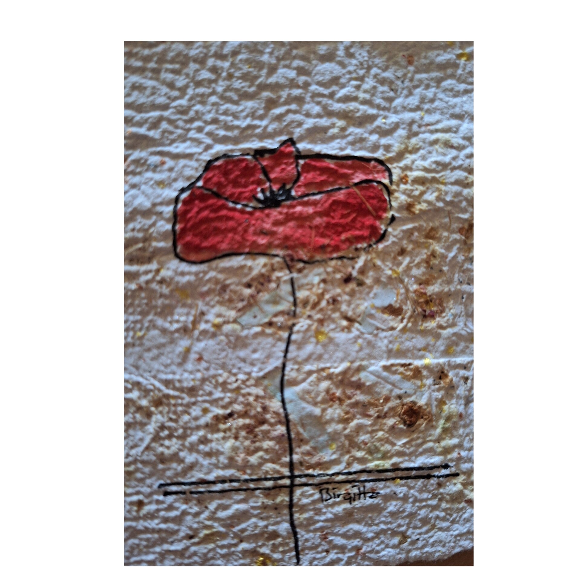 De wenskaarten zijn gemaakt van handgeschept papier op een dubbele kraftkaart in A6 formaat.